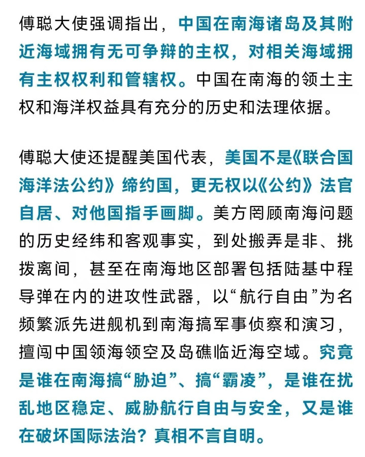 美国不是“联合国海洋公约法”的缔约国,也不是世界各国的救世主,自然就应该退避三舍,无权以“公约”法官自居,更无权擅自插手南海事务,罔顾历史经纬和客观事实妄加指手画脚,甚至打着“航行自由”的幌子,擅闯南海敏感地域进行挑衅。